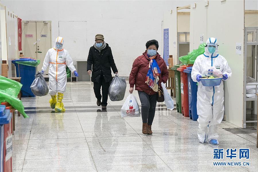 2月5日,醫護人員在江漢方艙醫院內幫患者辦理入住。當日22時,位於武漢市江漢區武漢國際會展中心的『方艙醫院』正式啟用,開始接收新型冠狀病毒感染的肺炎輕癥患者。這座『方艙醫院』名為江漢方艙醫院,床位數1600張。新華社記者熊琦攝